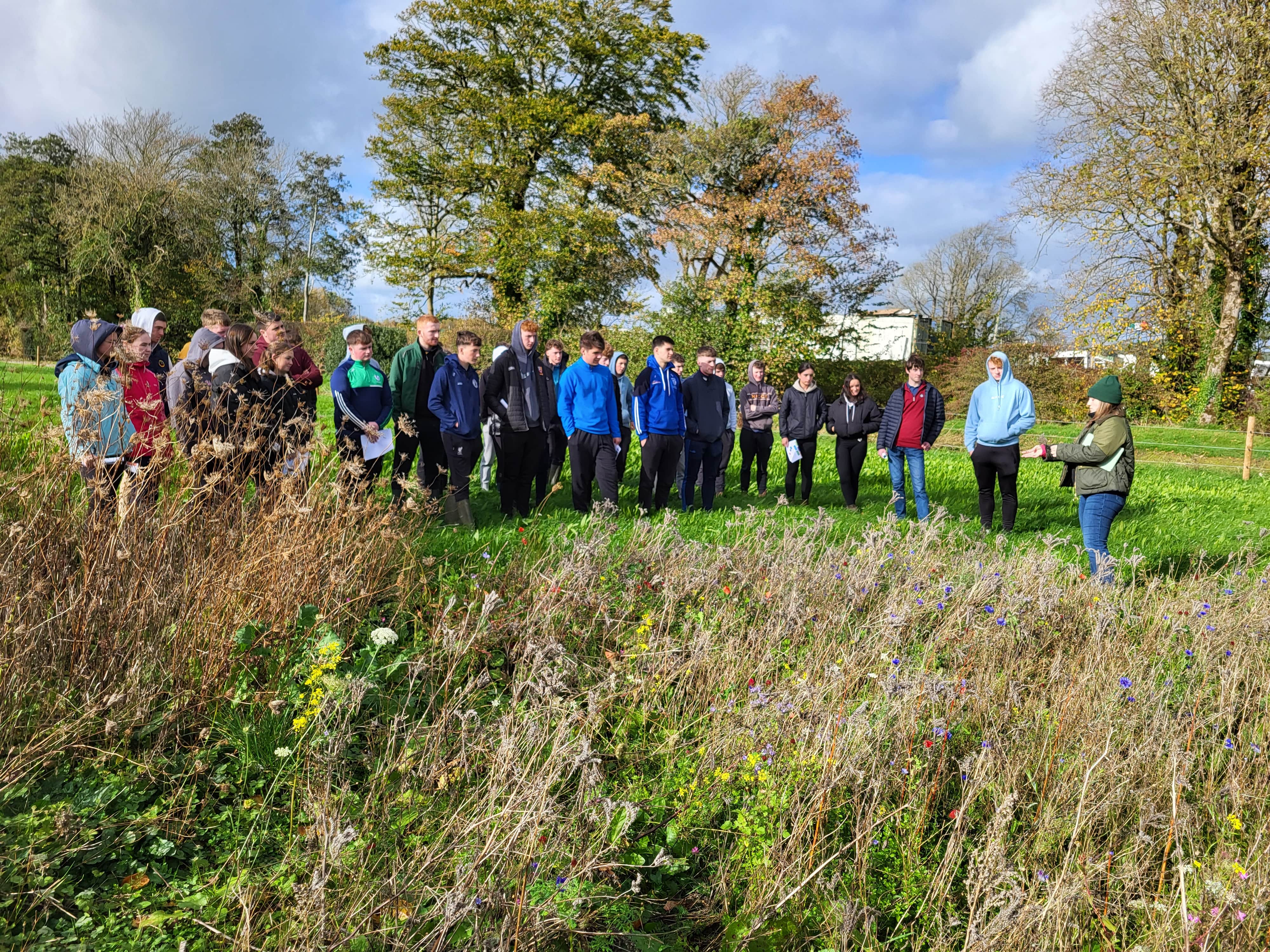 At the end of October, the MAS Grassland and Farmland Biodiversity Demonstration Site at UCC welcomed a group of 1st Year Agricultural Science students for a field trip hosted by Dr Aoife Leader, MAS Postdoctoral Researcher in Farmland Biodiversity, and Dr Deirdre Hennessy, UCC.